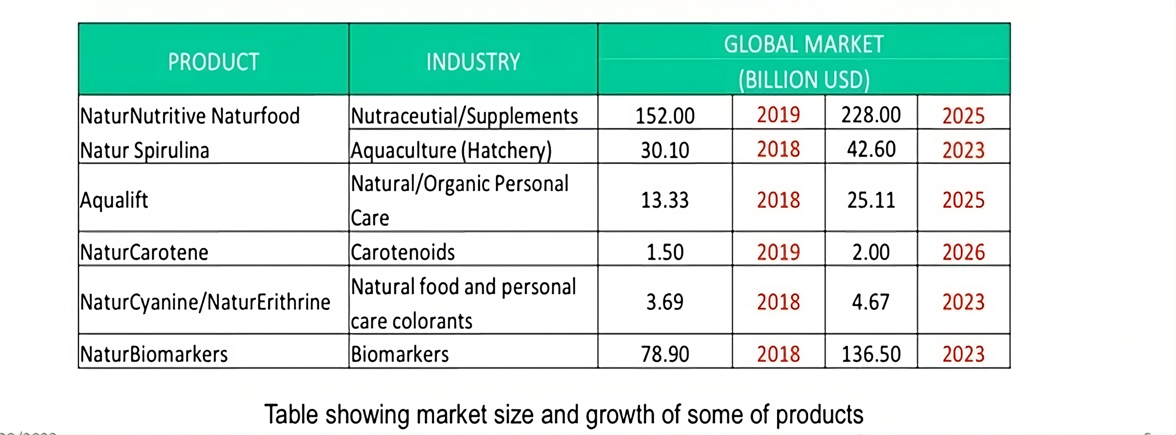 | X | X | Masso | Spain | Have shown to be potential buyers for Acqualift and NaturCyanin. |